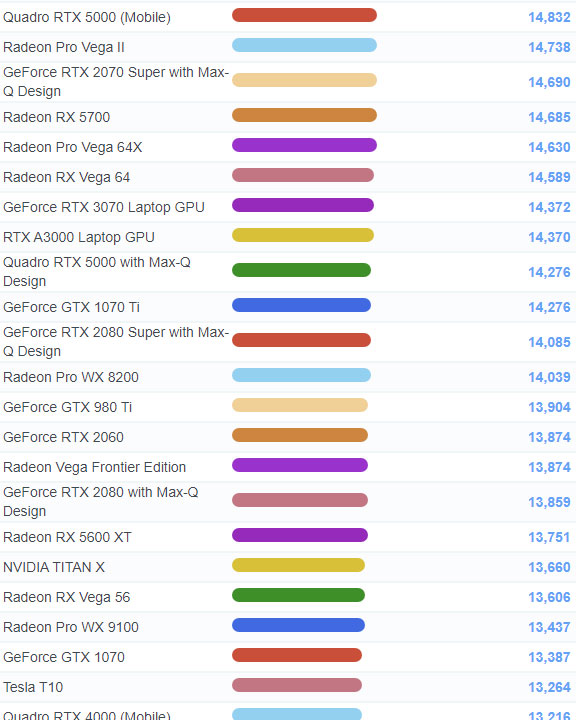 | 45 | Quadro RTX 5000 (Mobile) | 14,832 |