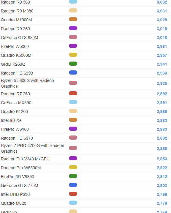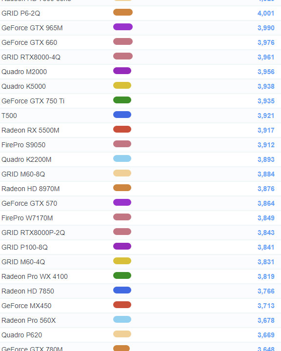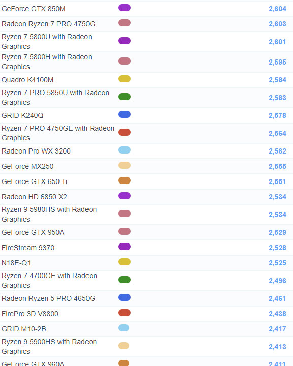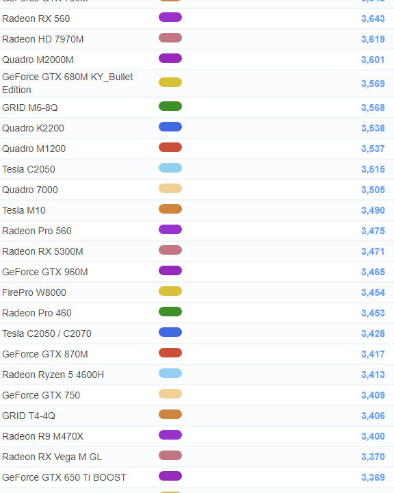 | 39 | GeForce RTX 3080 Laptop GPU | 15,867 |