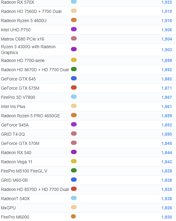 | 520 | Radeon Ryzen 5 PRO 4650GE | 1,859 |