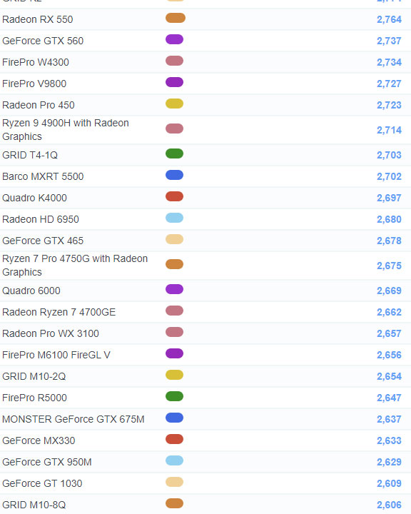 | 554 | Radeon Pro WX 2100 | 1,756 |