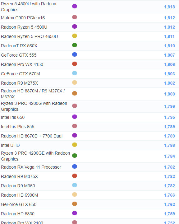 | 535 | Radeon Ryzen 5 4500U | 1,810 |
