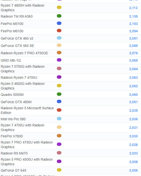 | 472 | Radeon Ryzen 7 4700U | 2,064 |