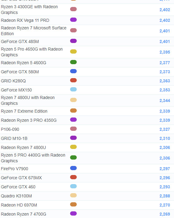 | 470 | Radeon Ryzen 7 PRO 4750GE | 2,076 |