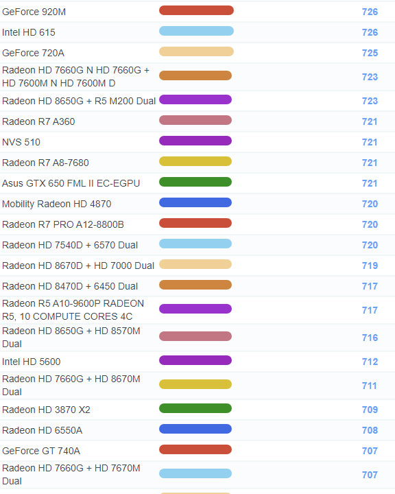 | 1110 | Radeon HD 8550G + R5 M200 Dual | 619 |