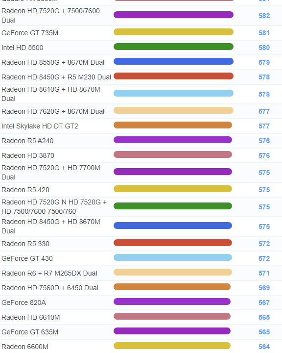 | 1156 | Radeon HD 8450G + R5 M230 Dual | 578 |