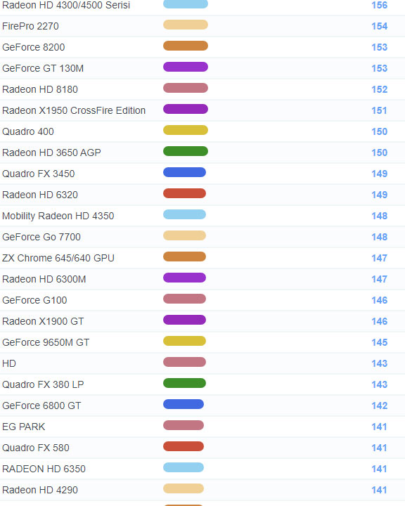 | 1593 | Radeon HD 4300/4500 Serisi | 156 |