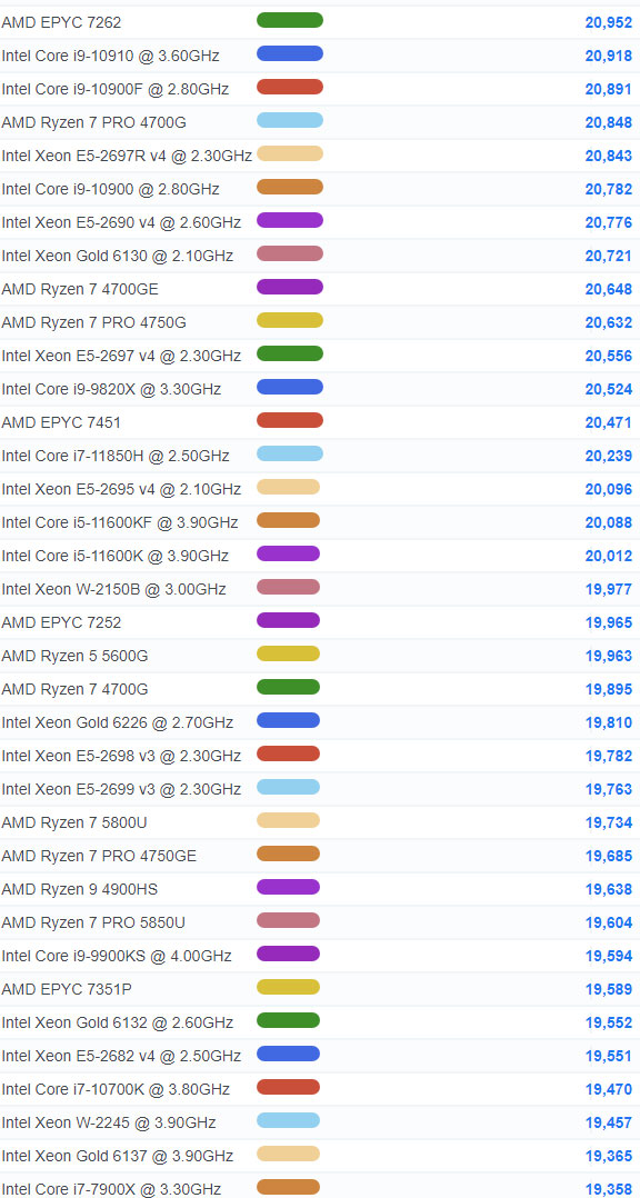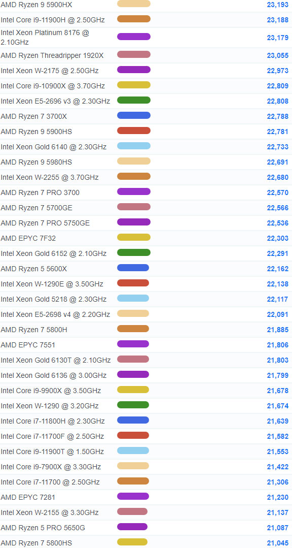 | 21 | AMD Ryzen 9 5950X | 46,136 |