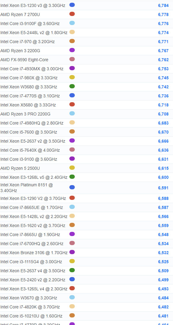 | 798 | Intel Core i5-7600 @ 3.50GHz | 6,670 |