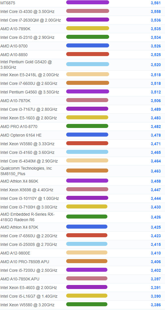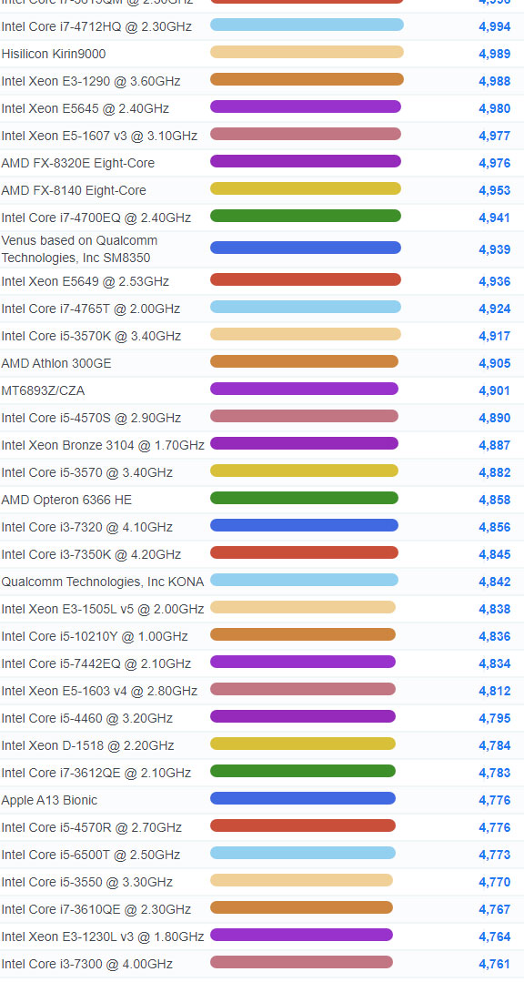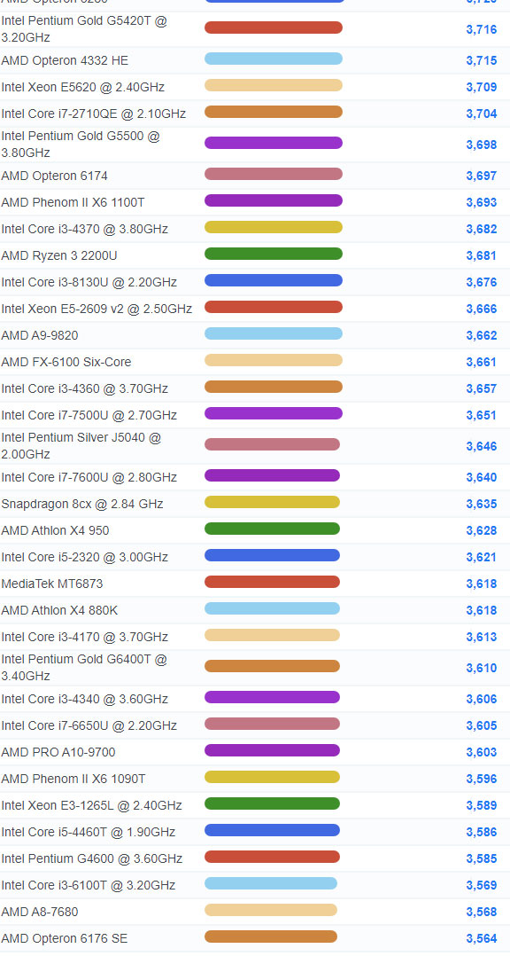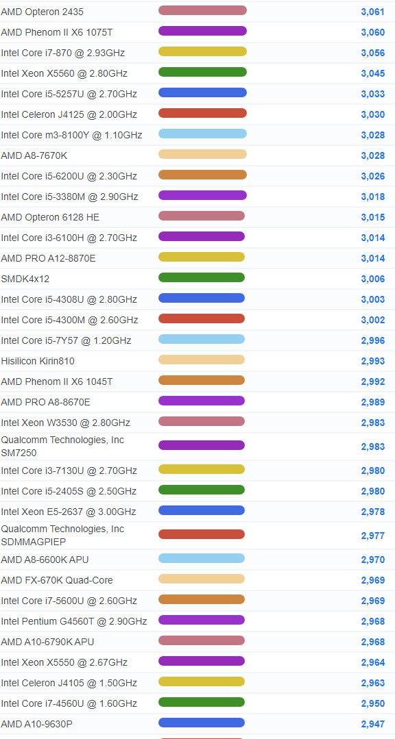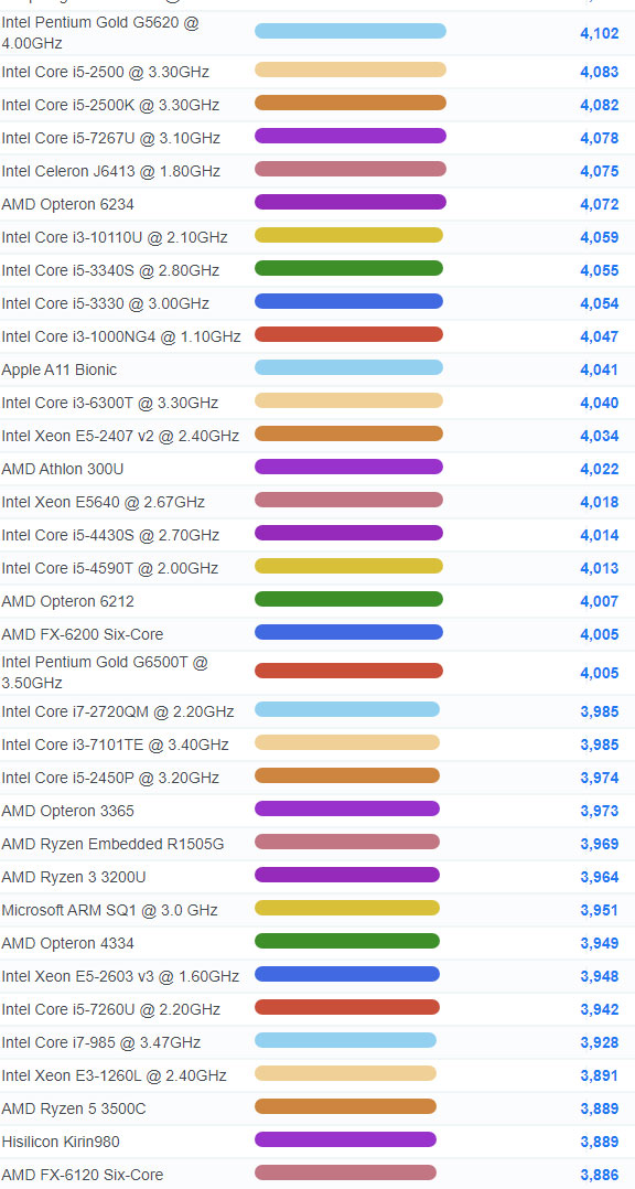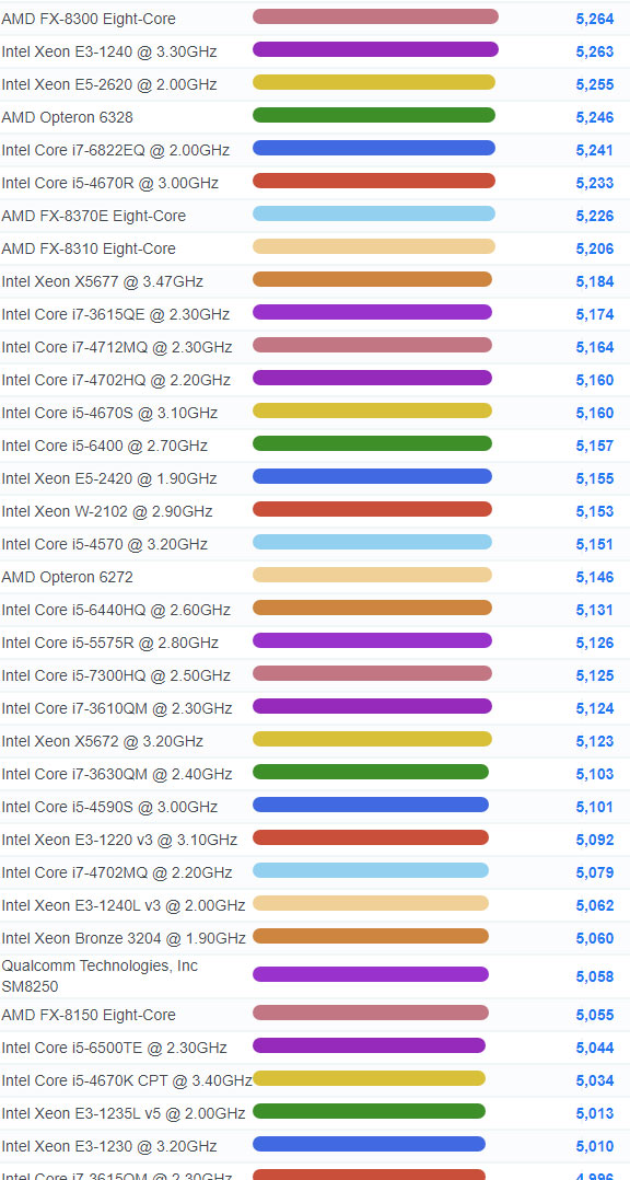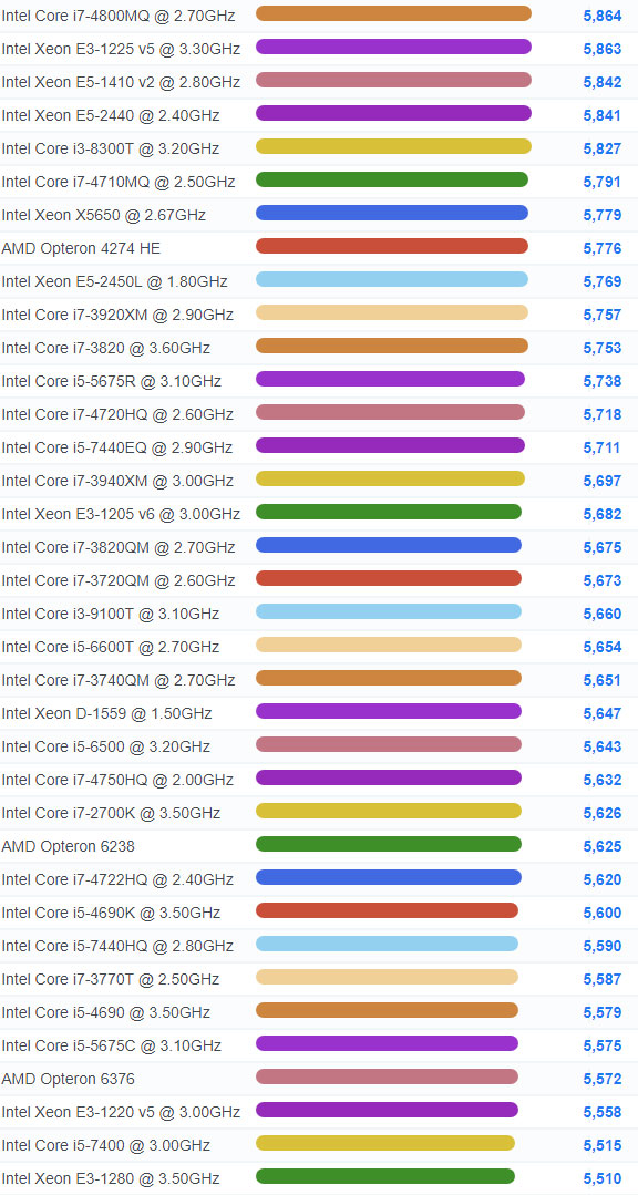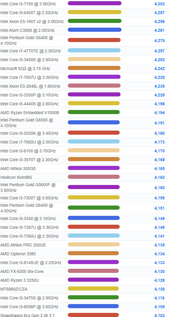 | 912 | Intel Core i3-8300T @ 3.20GHz | 5,827 |
