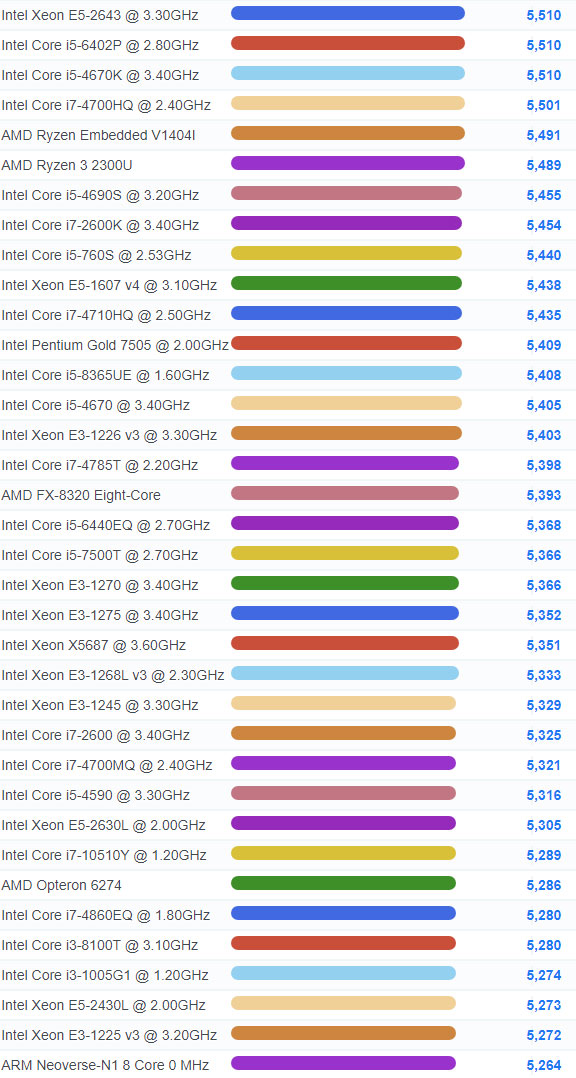 | 945 | Intel Core i5-6402P @ 2.80GHz | 5,510 |