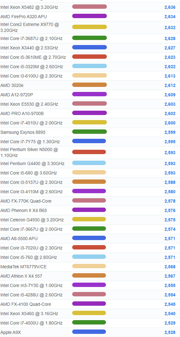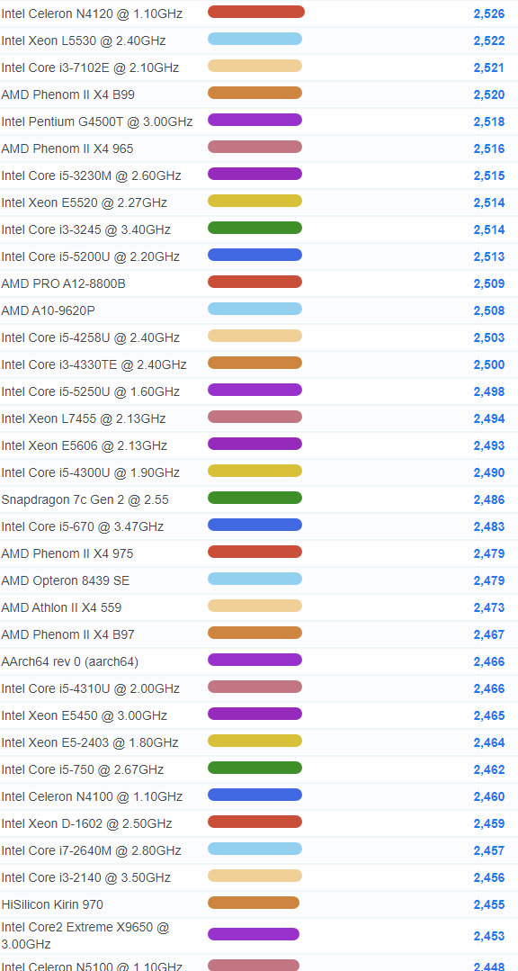| 1699 | Intel Pentium 4417U @ 2.30GHz | 2,247 |