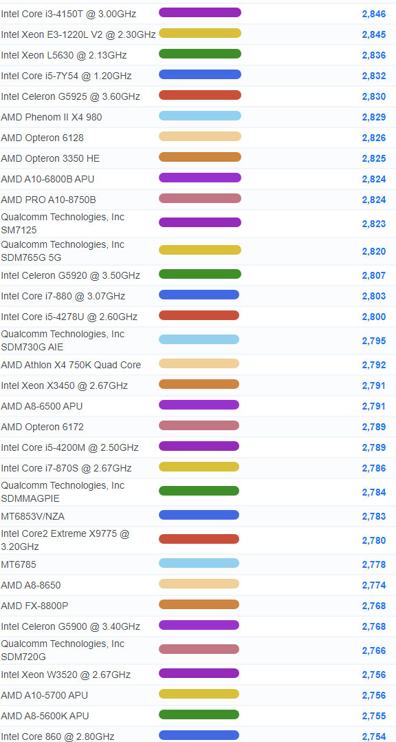| 877 | Intel Xeon E3-1505L v6 @ 2.20GHz | 6,088 |