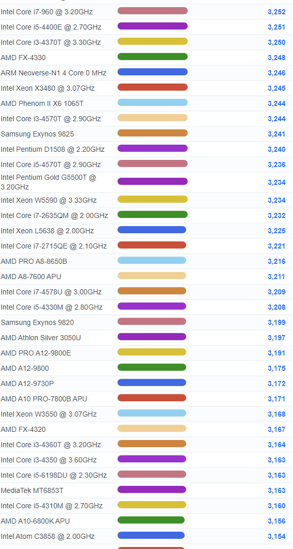 | 901 | Intel Core i3-9300T @ 3.20GHz | 5,927 |