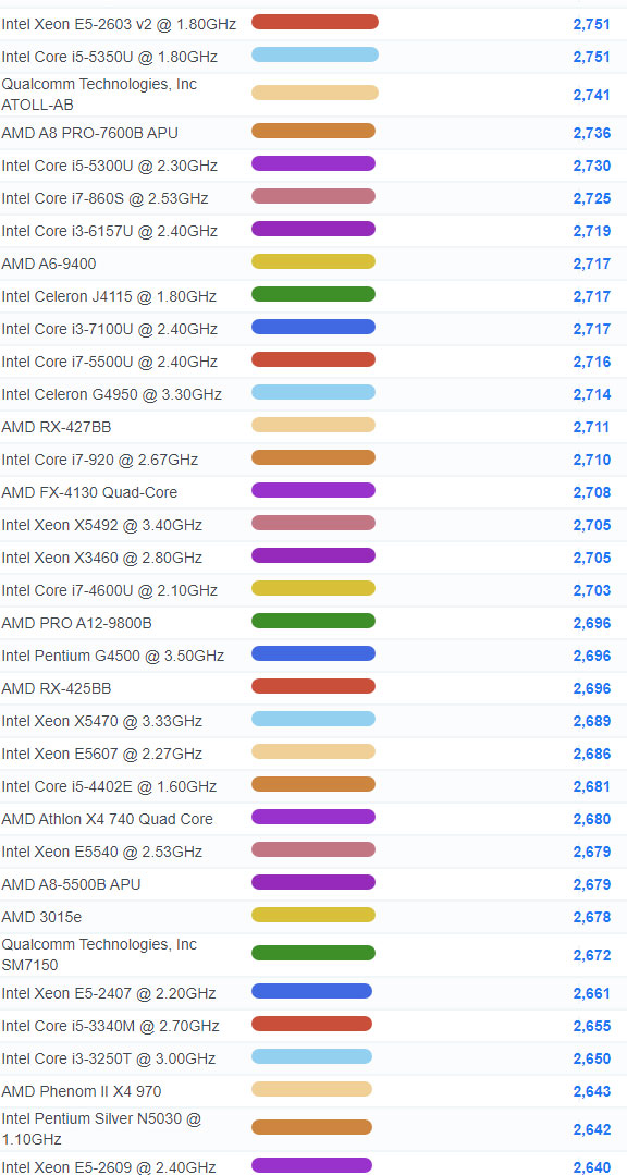 | 1732 | Intel Pentium 4415U @ 2.30GHz | 2,207 |