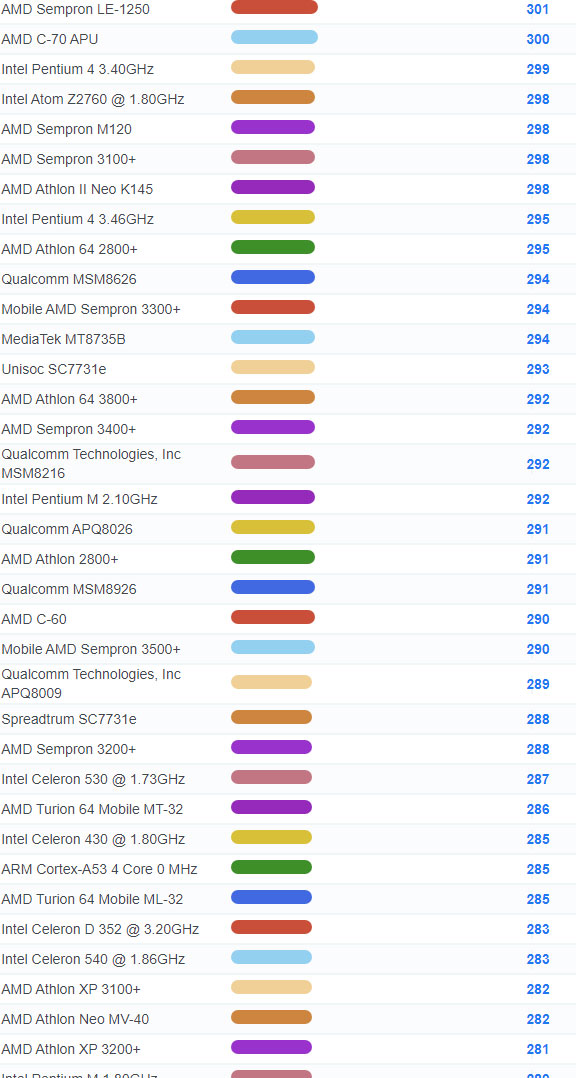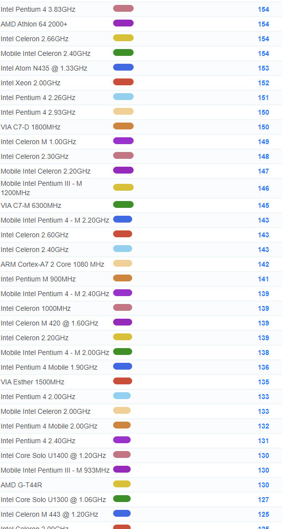 | 3463 | Intel Core Solo U1300 @ 1.06GHz | 127 |
