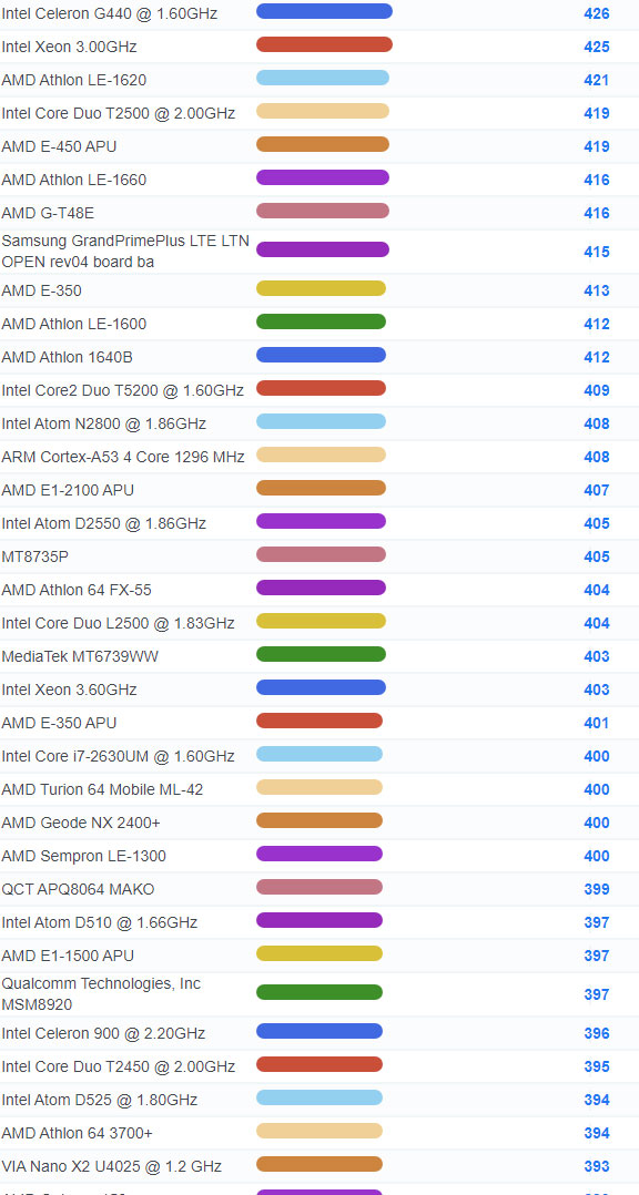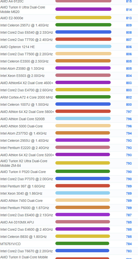 | 2687 | Intel Celeron E3400 @ 2.60GHz | 817 |