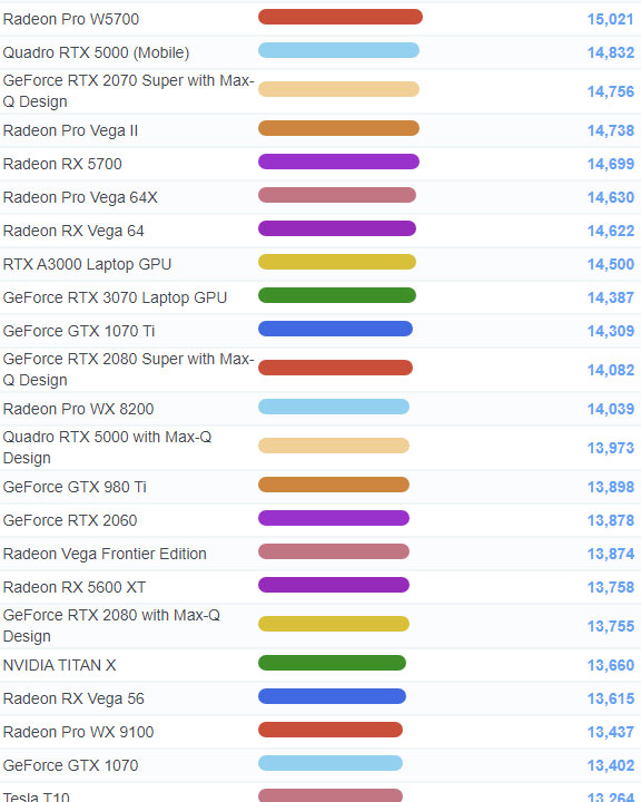 | 79 | Radeon Pro 5700 XT | 12,076 |