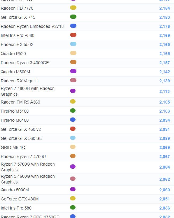 | 470 | Radeon Ryzen 3 4300GE | 2,157 |