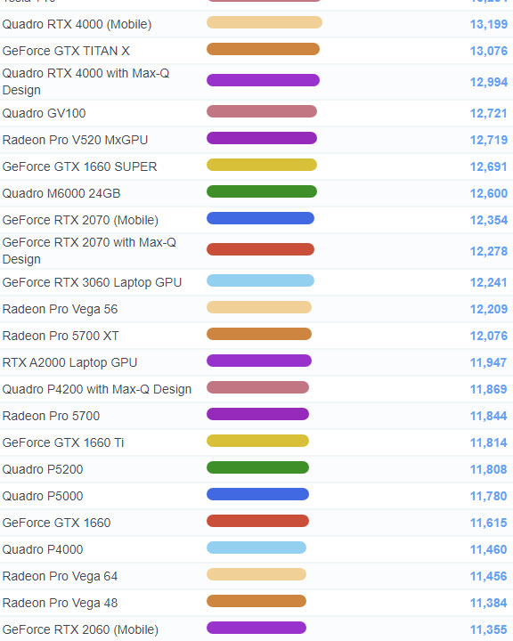 | 68 | Quadro RTX 4000 (Mobile) | 13,199 |