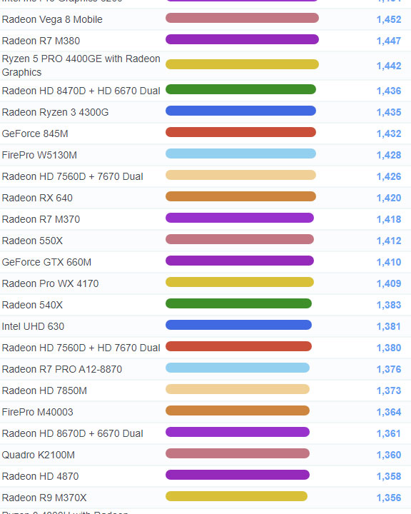 | 625 | Radeon Vega 8 Mobile | 1,452 |