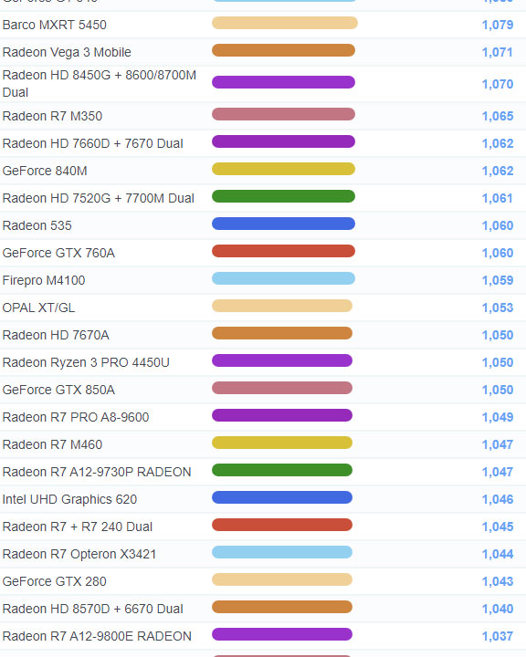 | 1051 | Radeon R7 A360 | 676 |