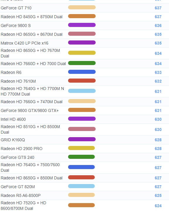 | 1089 | GeForce GT 710 | 637 |