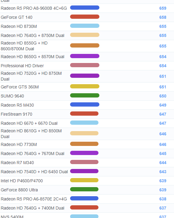 | 1041 | Radeon HD 8650G + R5 M230 Dual | 686 |