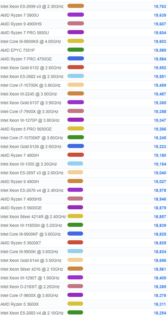 | 75 | AMD Ryzen Threadripper 2970WX | 29,653 |