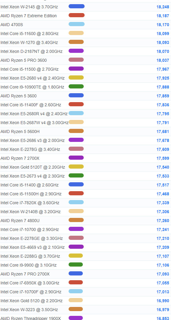 | 59 | Intel Xeon W-2295 @ 3.00GHz | 31,594 |