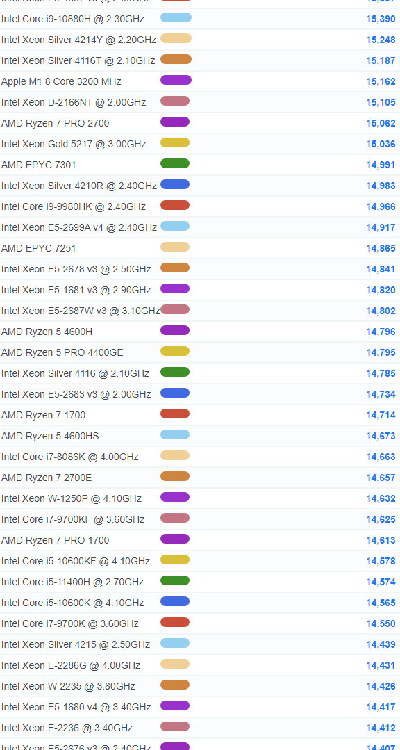 | 79 | Intel Xeon Gold 6210U @ 2.50GHz | 28,915 |