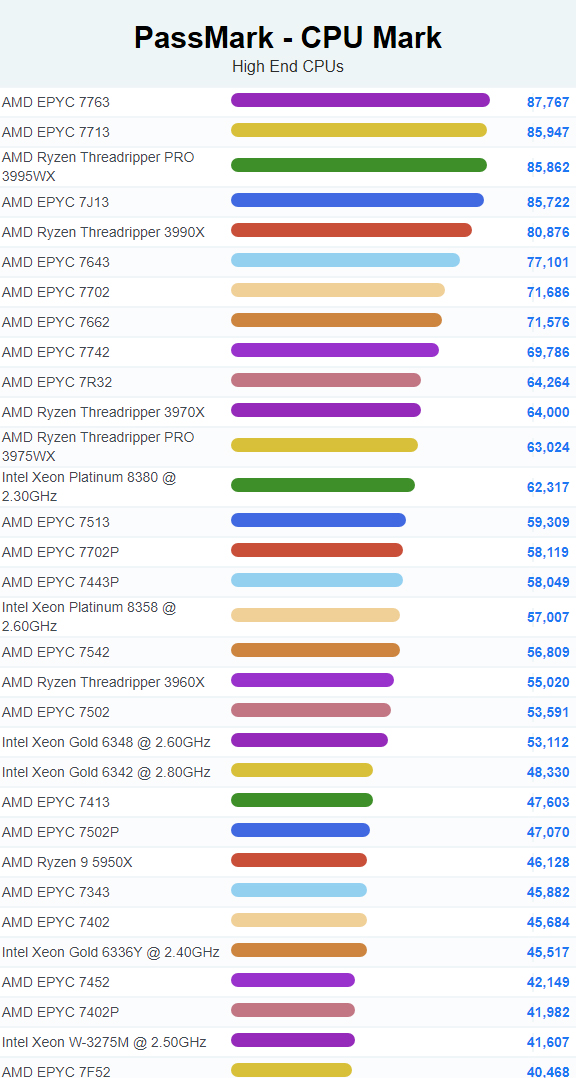 | 1 | AMD EPYC 7763 | 87,767 |