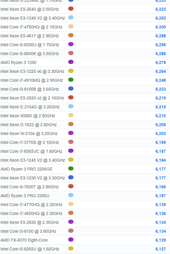 | 881 | Intel Core i3-8100 @ 3.60GHz | 6,134 |