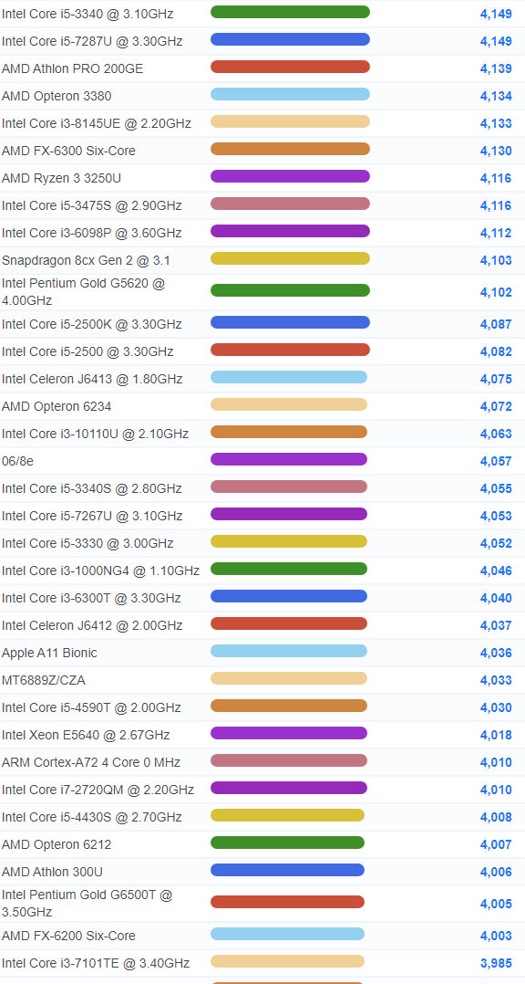 | 913 | Intel Core i3-9300T @ 3.20GHz | 5,927 |