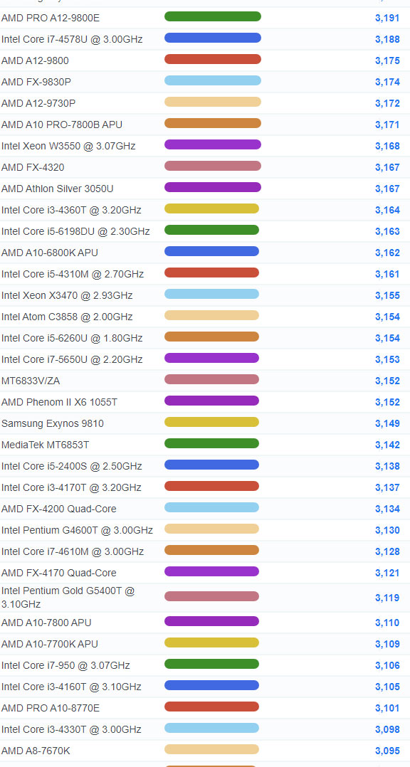 | 910 | AMD Ryzen 3 3350U | 5,939 |
