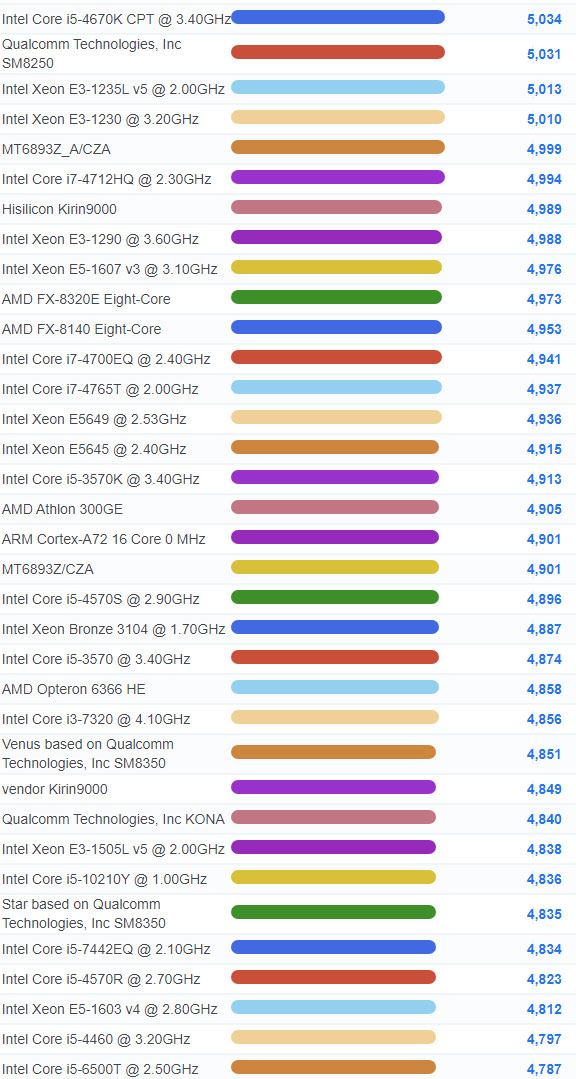 | 888 | Intel Core i5-6600 @ 3.30GHz | 6,097 |