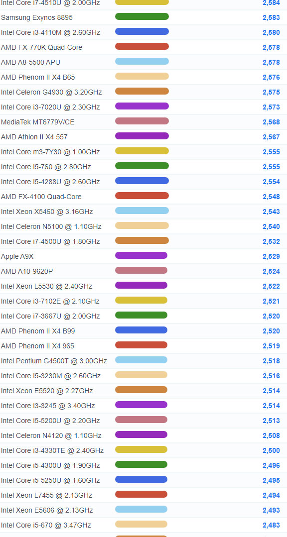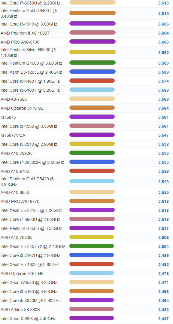 | 895 | Intel Core i5-7500 @ 3.40GHz | 6,061 |