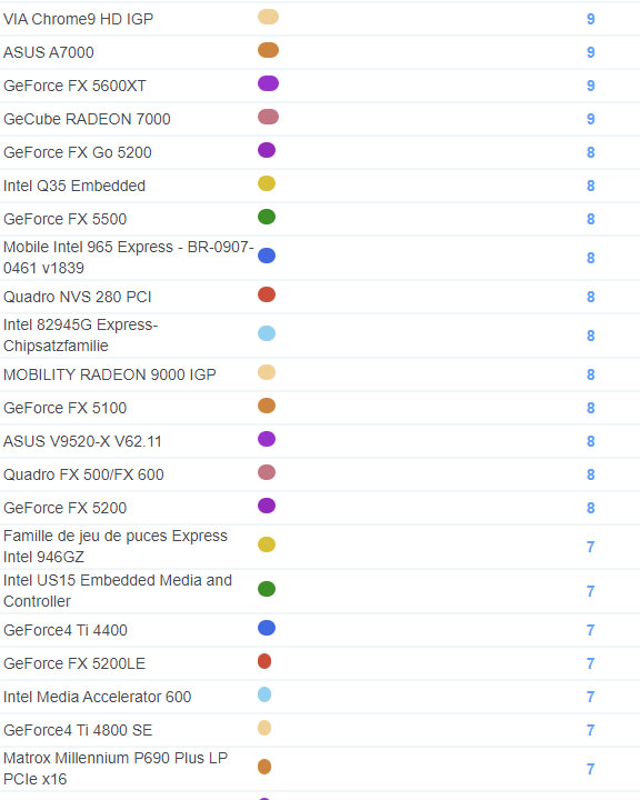 | 2140 | VIA/S3G UniChrome Pro IGP | 5 |