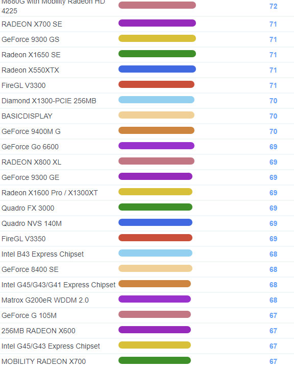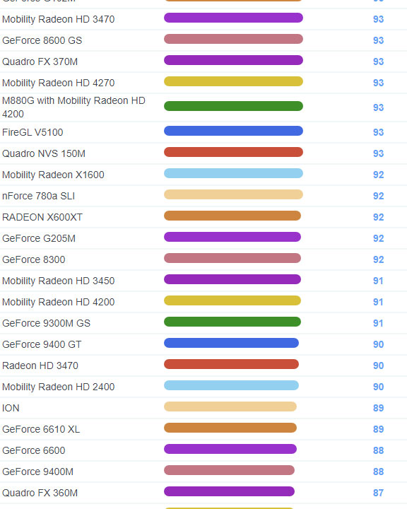 | 1748 | Mobility Radeon HD 4250 | 98 |