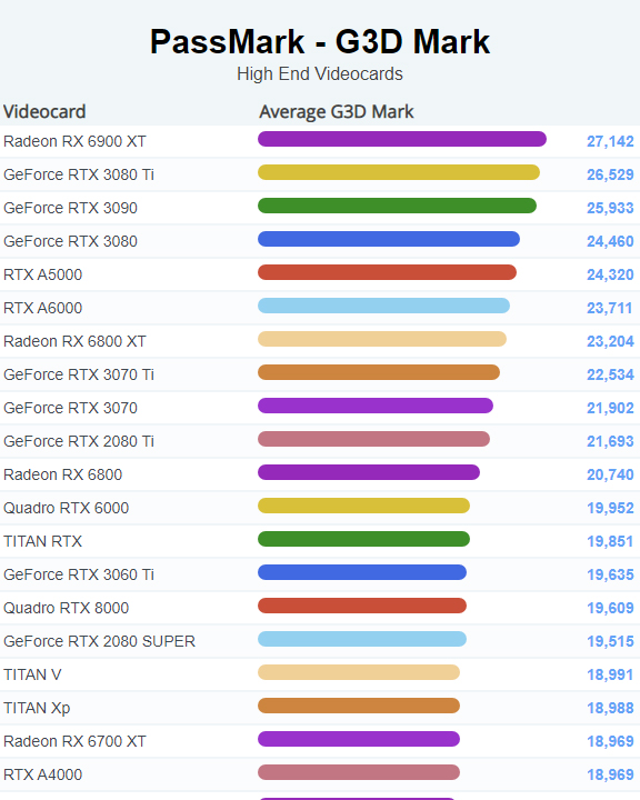 | 1 | Radeon RX 6900 XT | 27,142 |