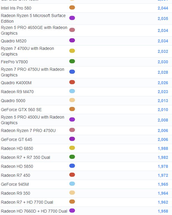 | 524 | Radeon R7 450 | 1,972 |