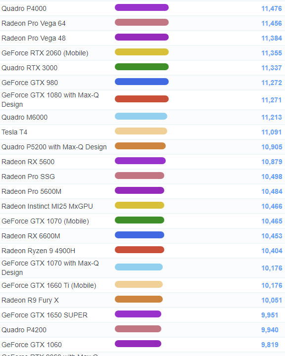 | 59 | Quadro RTX 5000 with Max-Q Design | 13,987 |