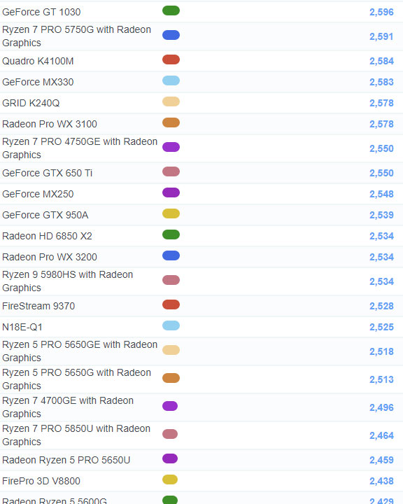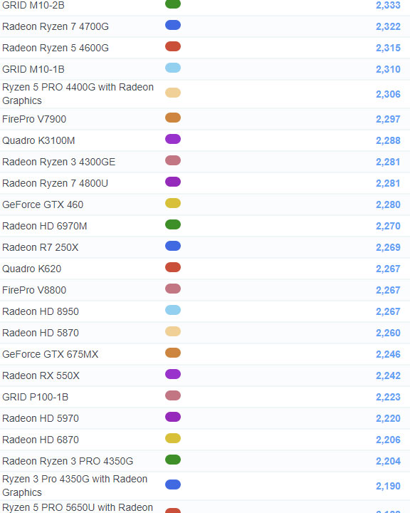 | 478 | Radeon RX 550X | 2,242 |