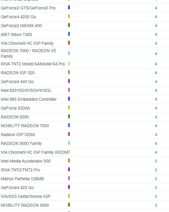 | 2187 | GeForce4 4200 Go | 4 |