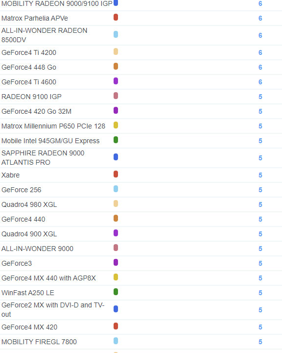 | 2173 | GeForce4 MX 4000 | 5 |