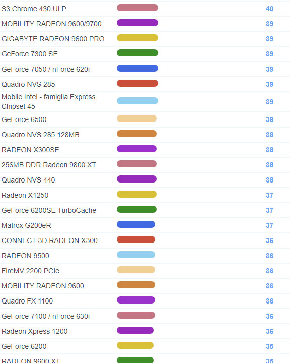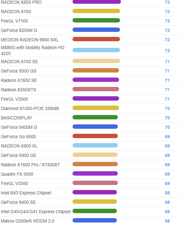 | 1726 | Radeon HD 2400 Pro | 114 |