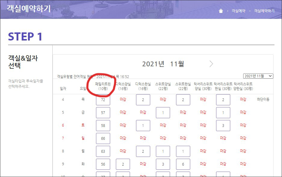 리조트는 예약 마감된 객실이 많네요.