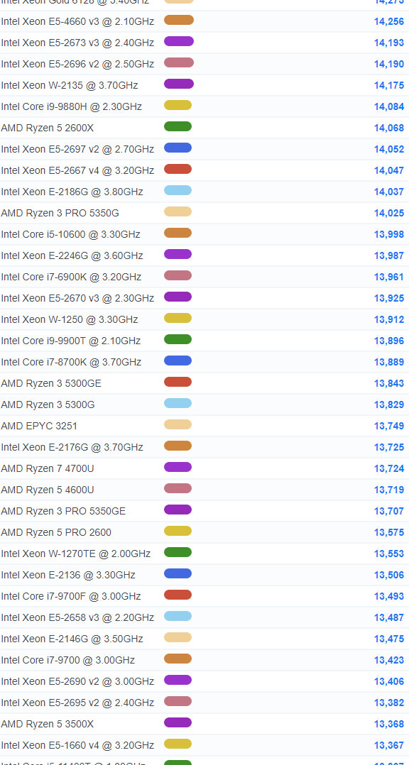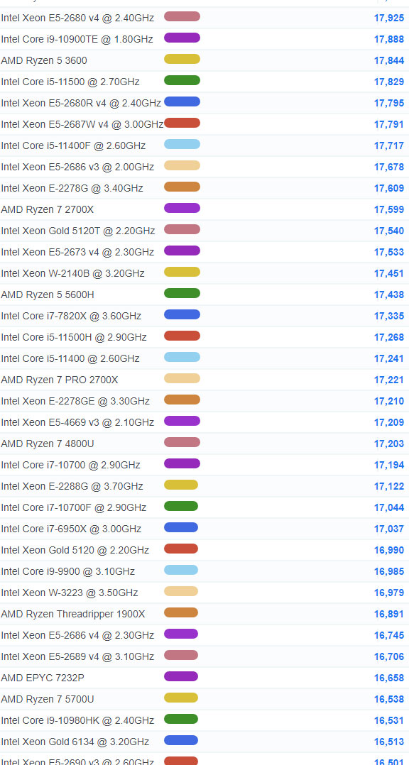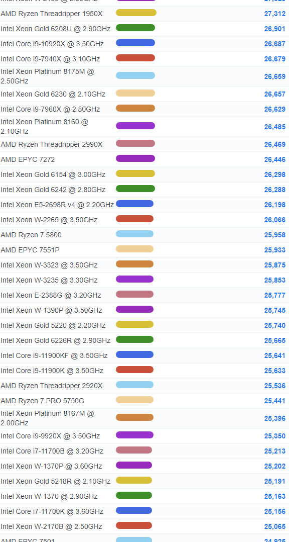 | 79 | Intel Xeon W-3245 @ 3.20GHz | 30,246 |