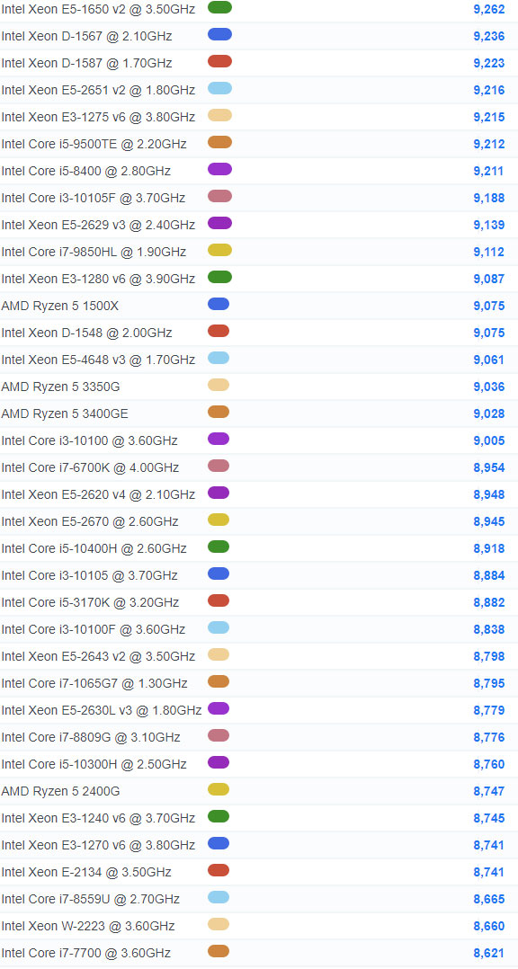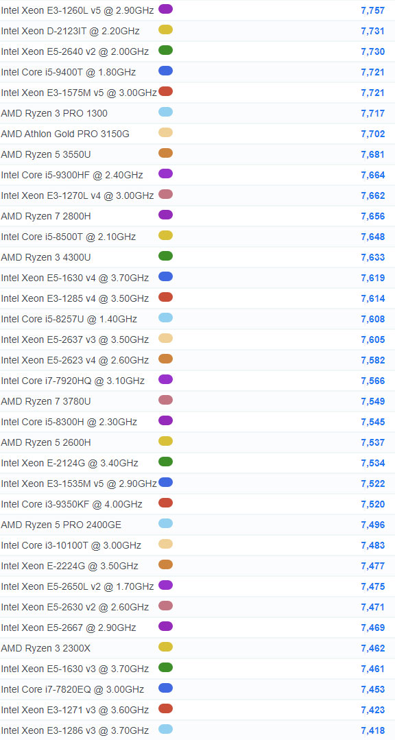 | 865 | Intel Xeon E3-1265L v4 @ 2.30GHz | 6,493 |