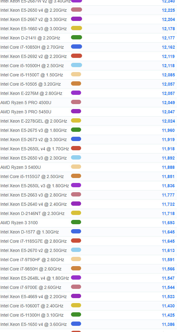출처 : https://www.cpubenchmark.net