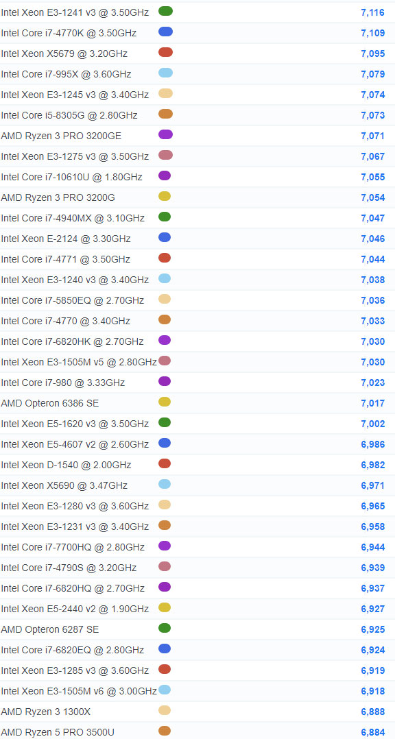| 840 | Intel Core i7-970 @ 3.20GHz | 6,747 |